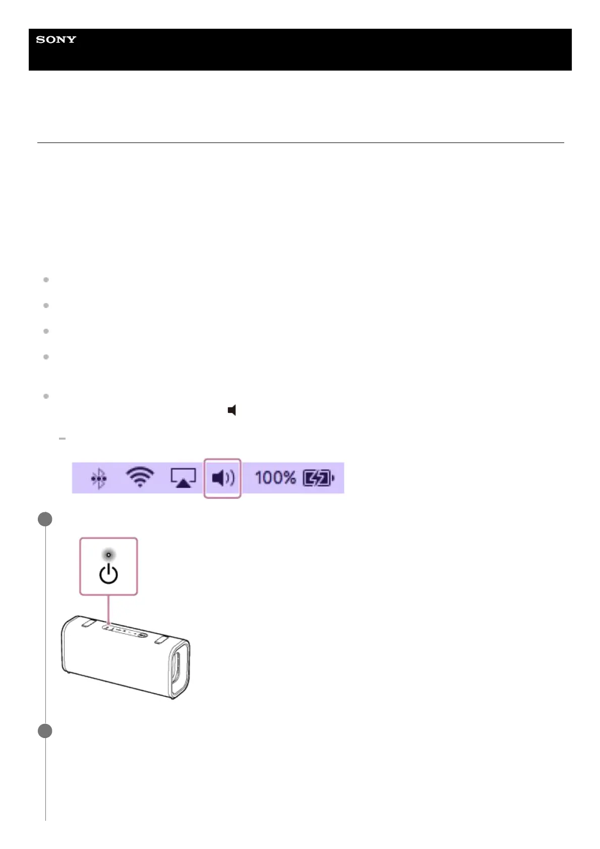 Connect the speaker to an AC outlet via a USB PD compatible AC adaptor. Or charge the built-in battery sufficiently.