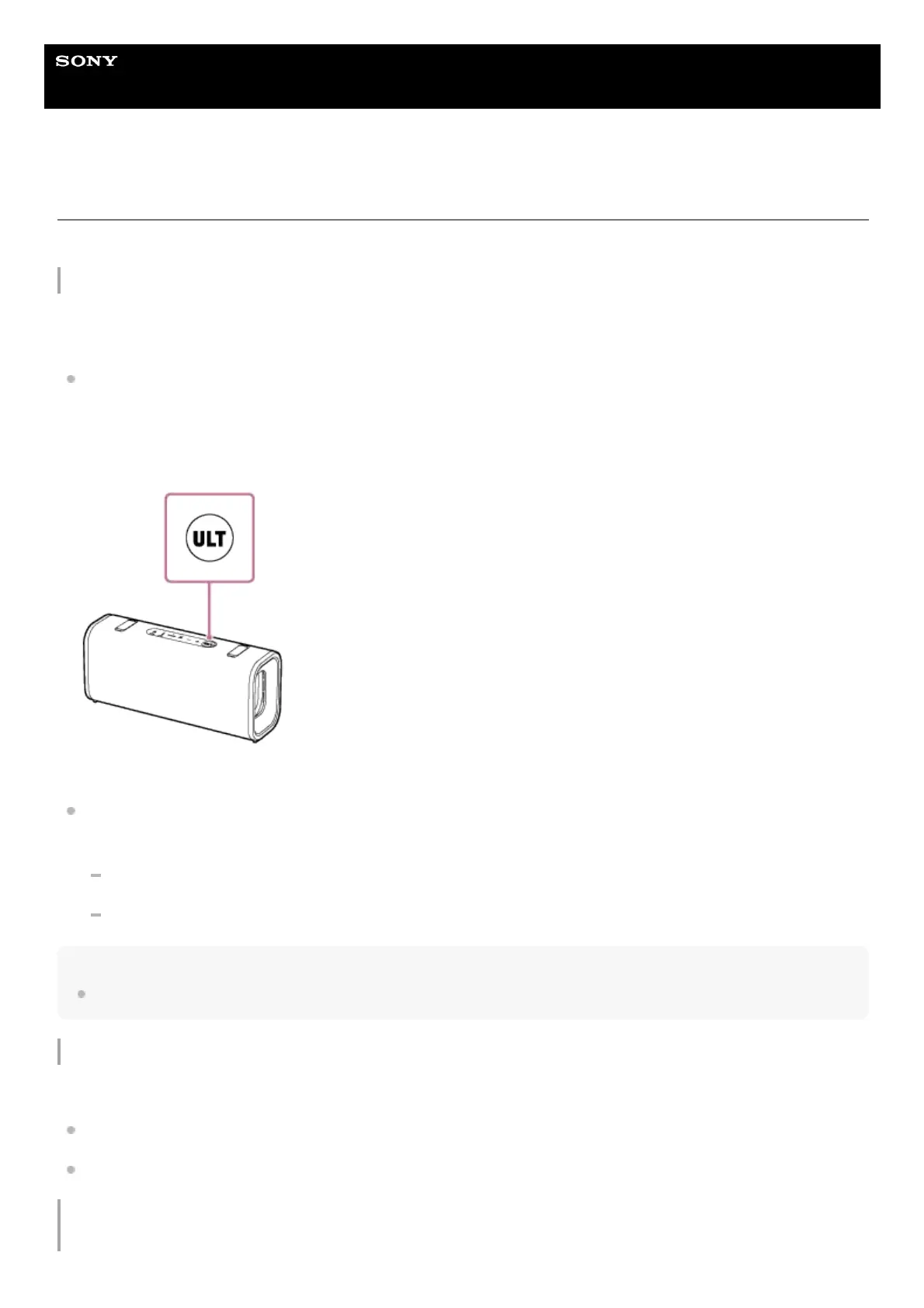 Each time you press the ULT button on the speaker, the ULT POWER SOUND setting switch between activated and