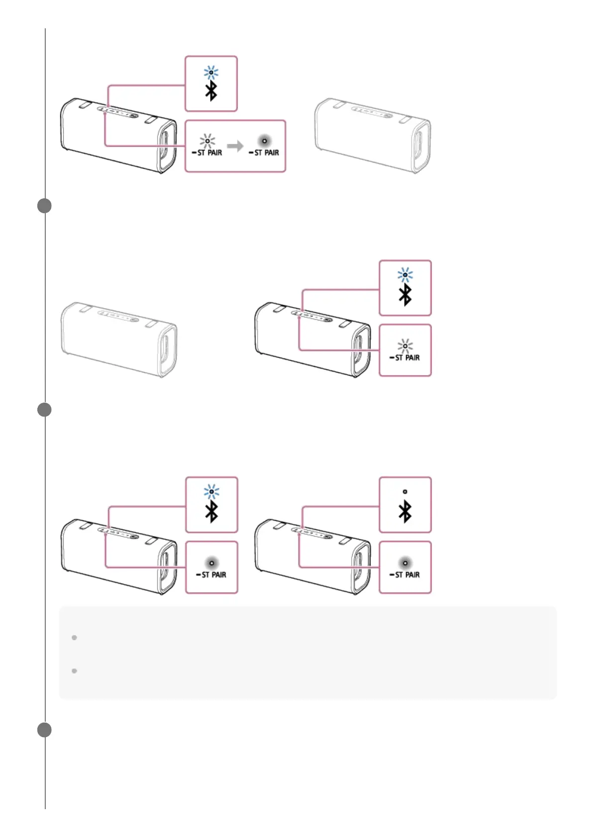 speaker. Then, the ST PAIR (Stereo Pair) indicators on both speakers stay lit and the BLUETOOTH indicator on the