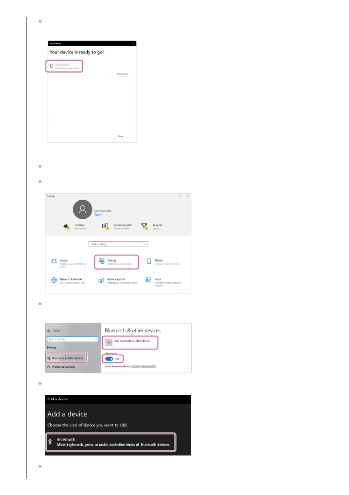 After pairing, the BLUETOOTH connection establishes automatically and [Connected music] or [Connected