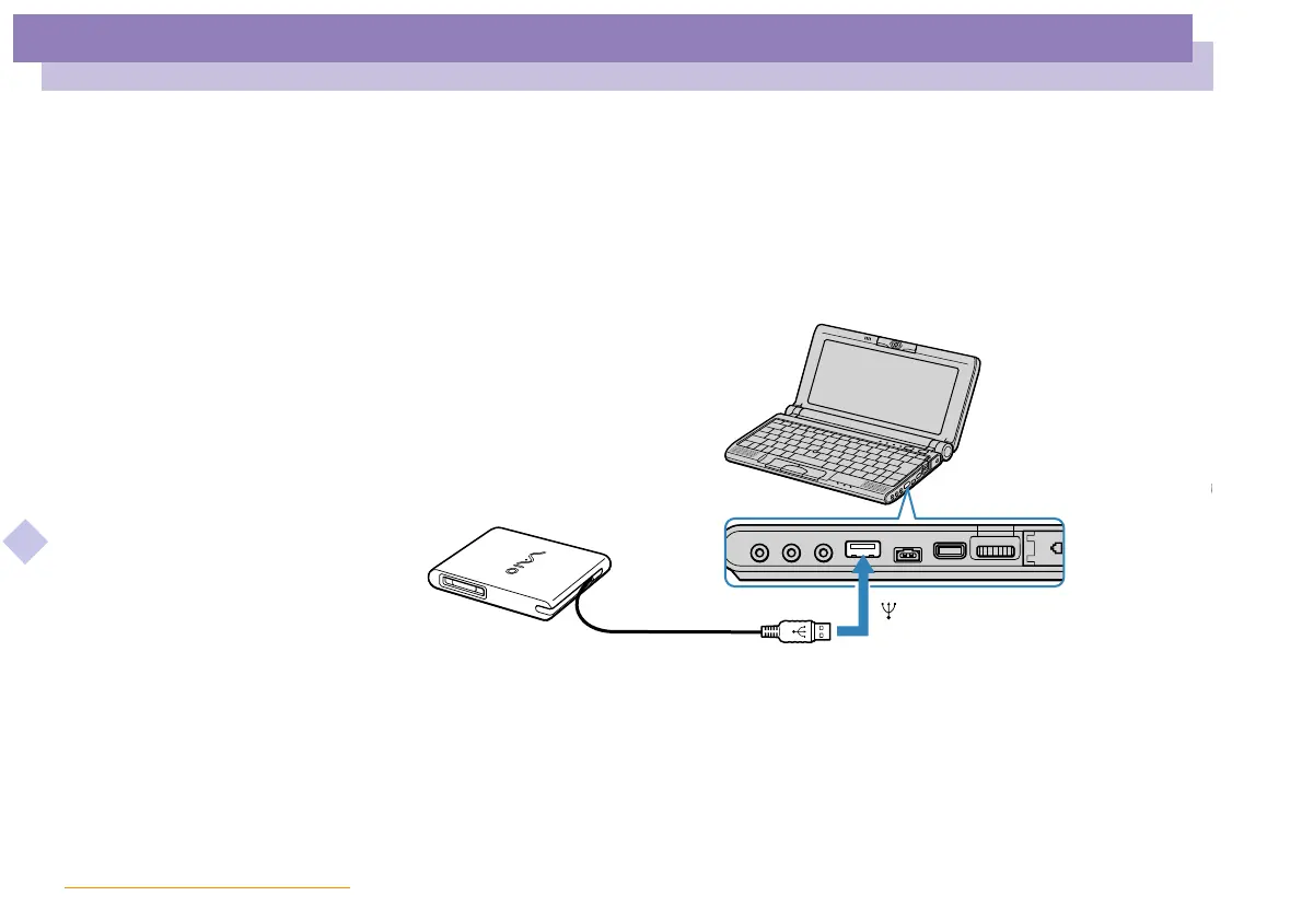 Plug the USB cable into the USB connector. The VAIO logo on the disk drive should be