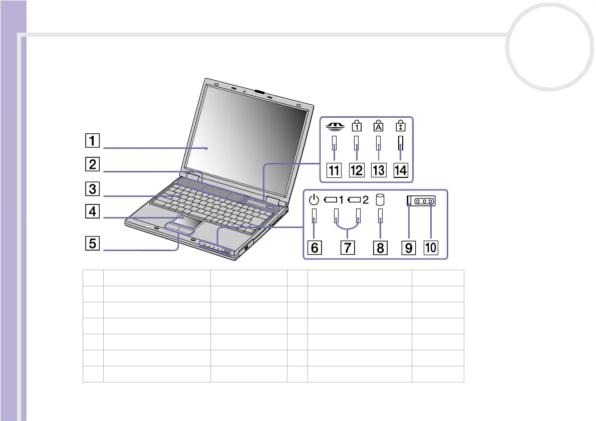 4 touchpad (page 37) 11 Memory Stick™ indicator (page 36)
