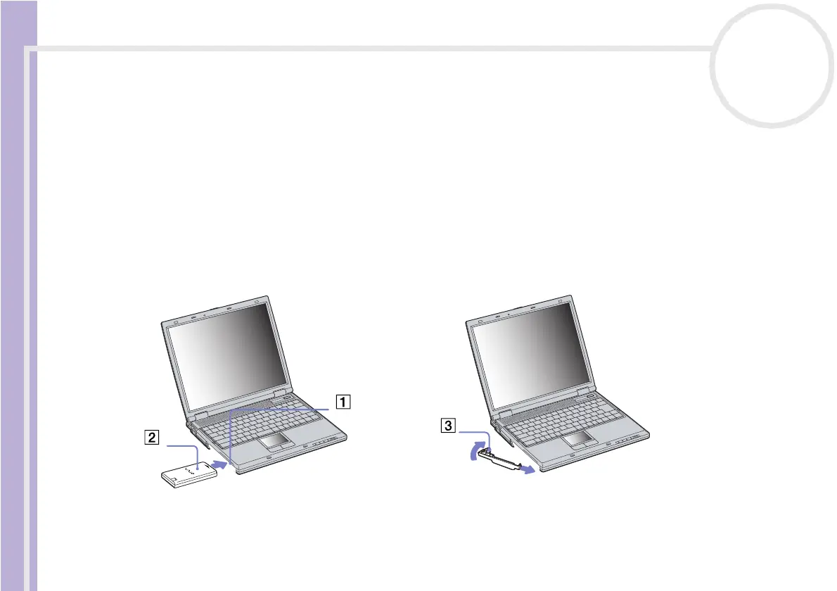 1 If the weight saver or the optical disc drive is in the multi-purpose bay (1), remove it (See Using the