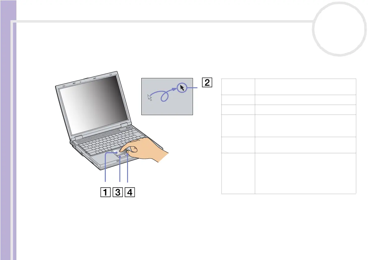 The keyboard contains a cursor-pointing device, your touchpad (1). You can point to, select, drag, and scroll