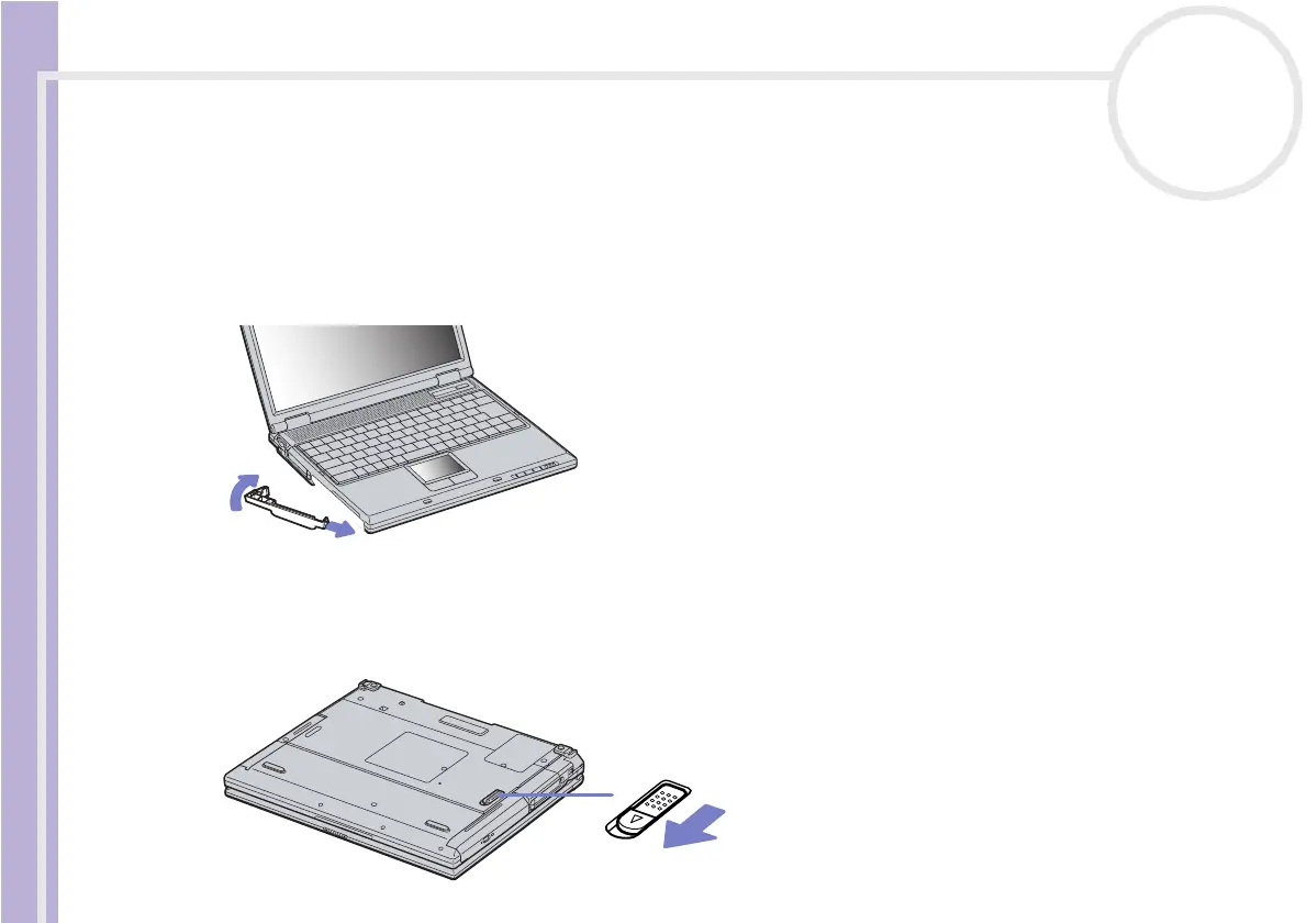 1 Slide the multi-purpose bay release lever on the bottom of the computer in the direction of the arrow.
