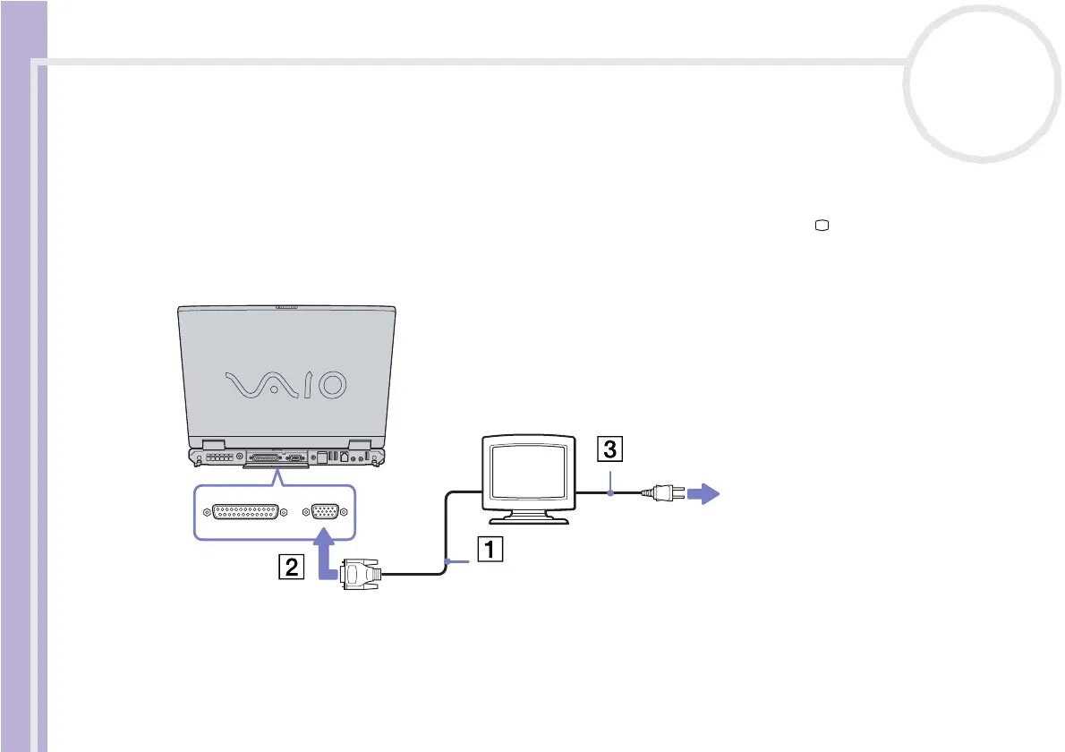 1 Plug the display cable (1) (not supplied) into the monitor/VGA connector (2) on the notebook.
