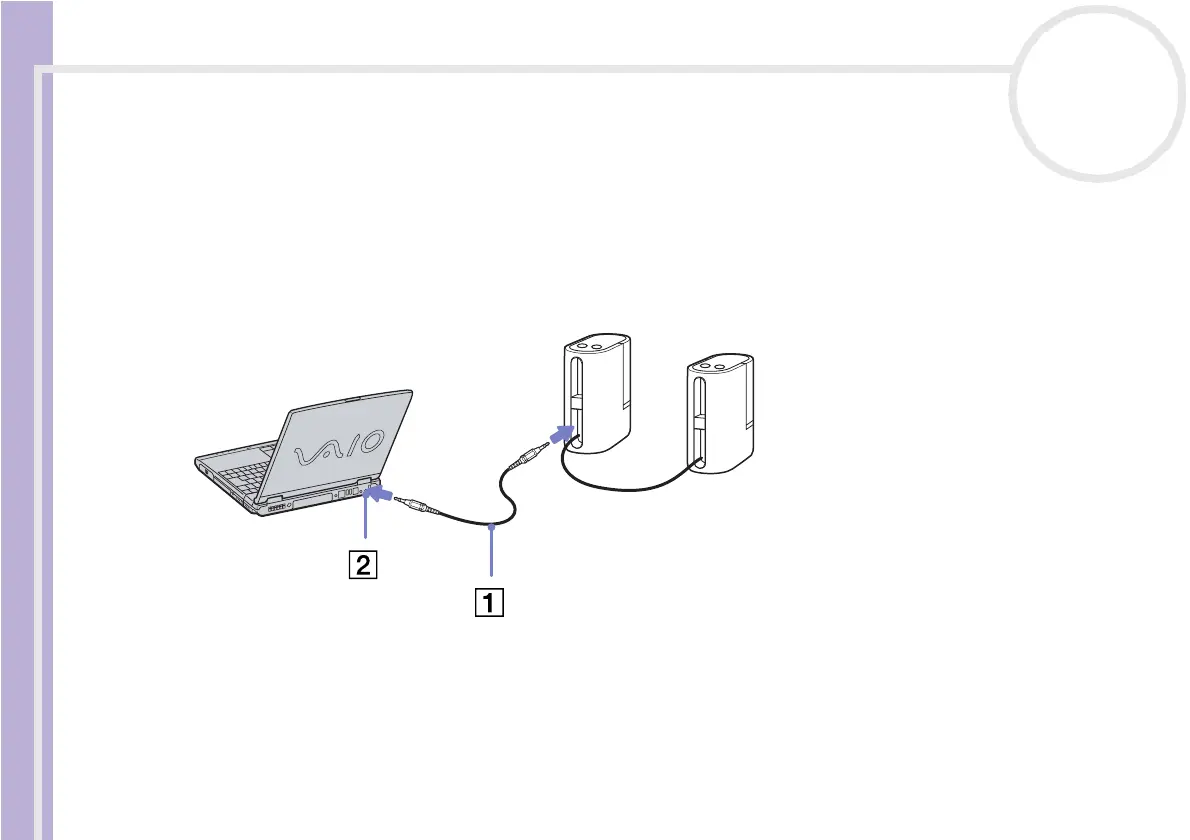 1 Plug the speaker cable (1) into the headphone connector (2).