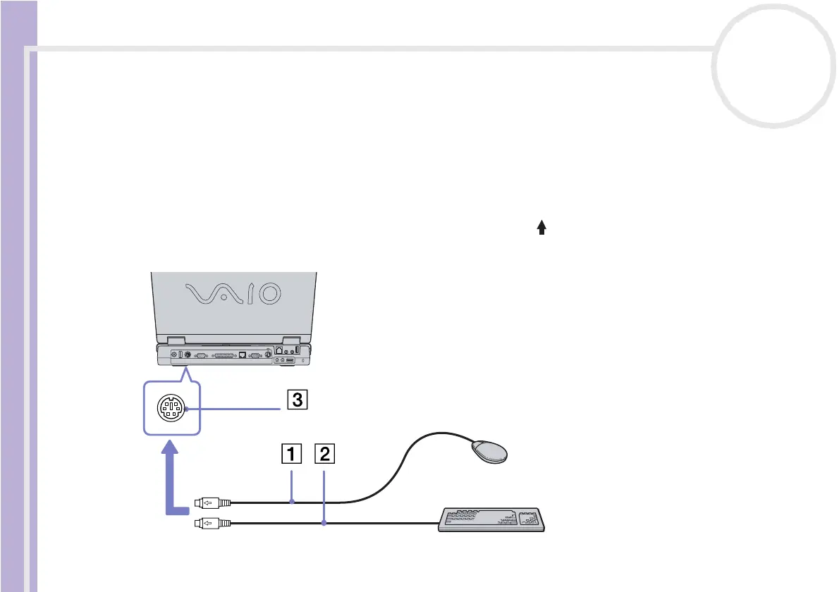 1 Plug the mouse cable (1) or the keyboard cable (2) with the symbol facing up into the PS/2 mouse/
