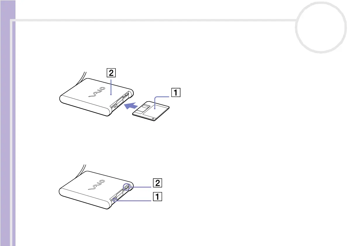 When you have finished using the floppy disk, wait until the LED indicator (1) turns off and then press the