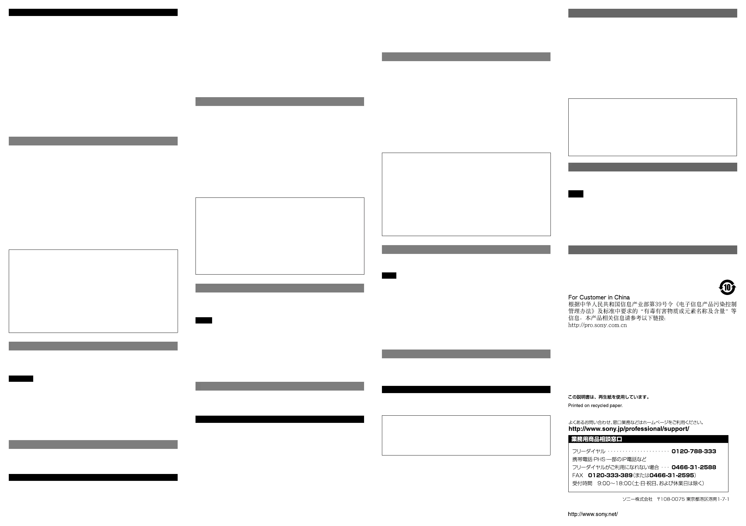 ⽆论保修期内外或基于任何理由,SONY 对任何损坏概不负责。由