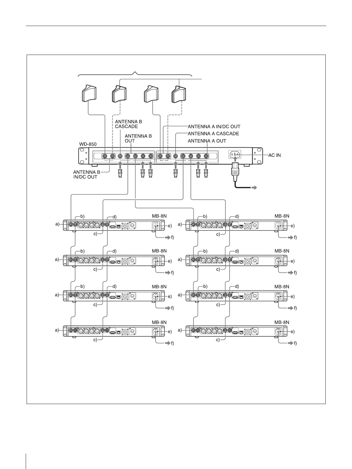 Beispiel 2: Wenn acht MB-8N Geräte angeschlossen sind (zwei direkt und