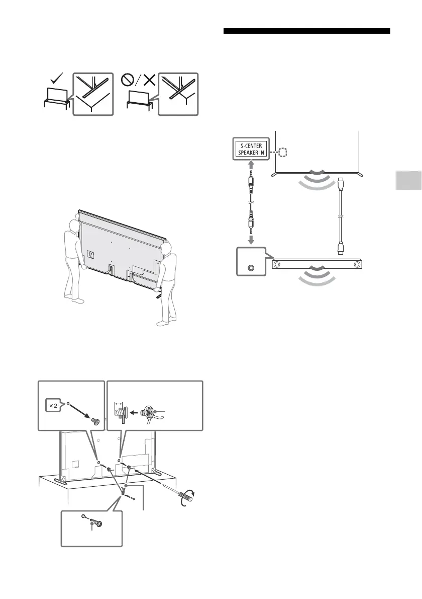 • Stellen Sie das Fernsehgerät so auf, dass der Tischständer des