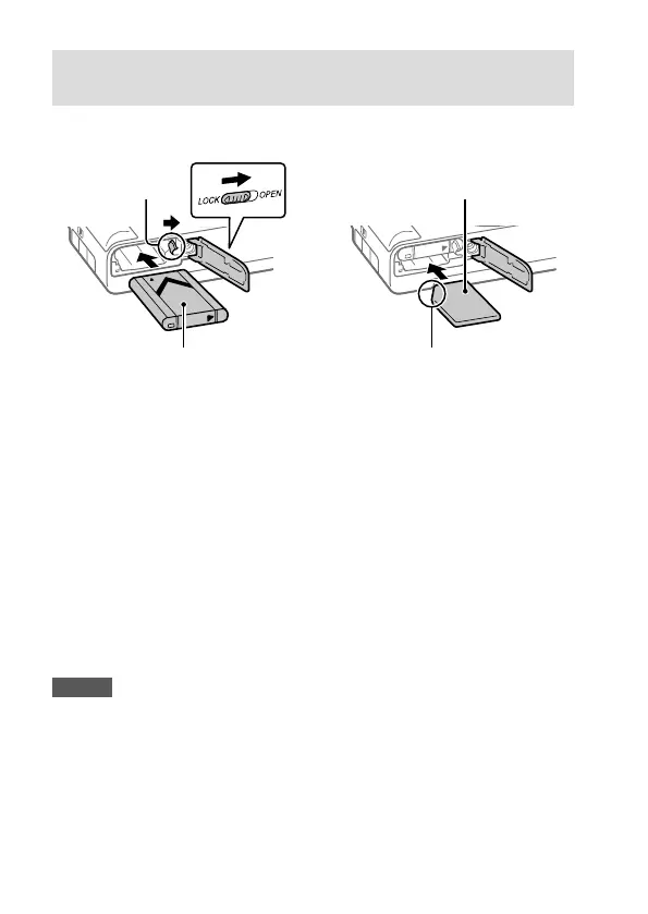 Otwórz pokrywę wnęki akumulatora/karty pamięci i wsuń akumulator oraz