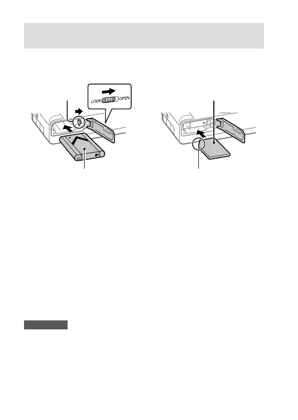 akkumulátort és egy memóriakártyát a fényképezőgépbe. Ezután csukja le