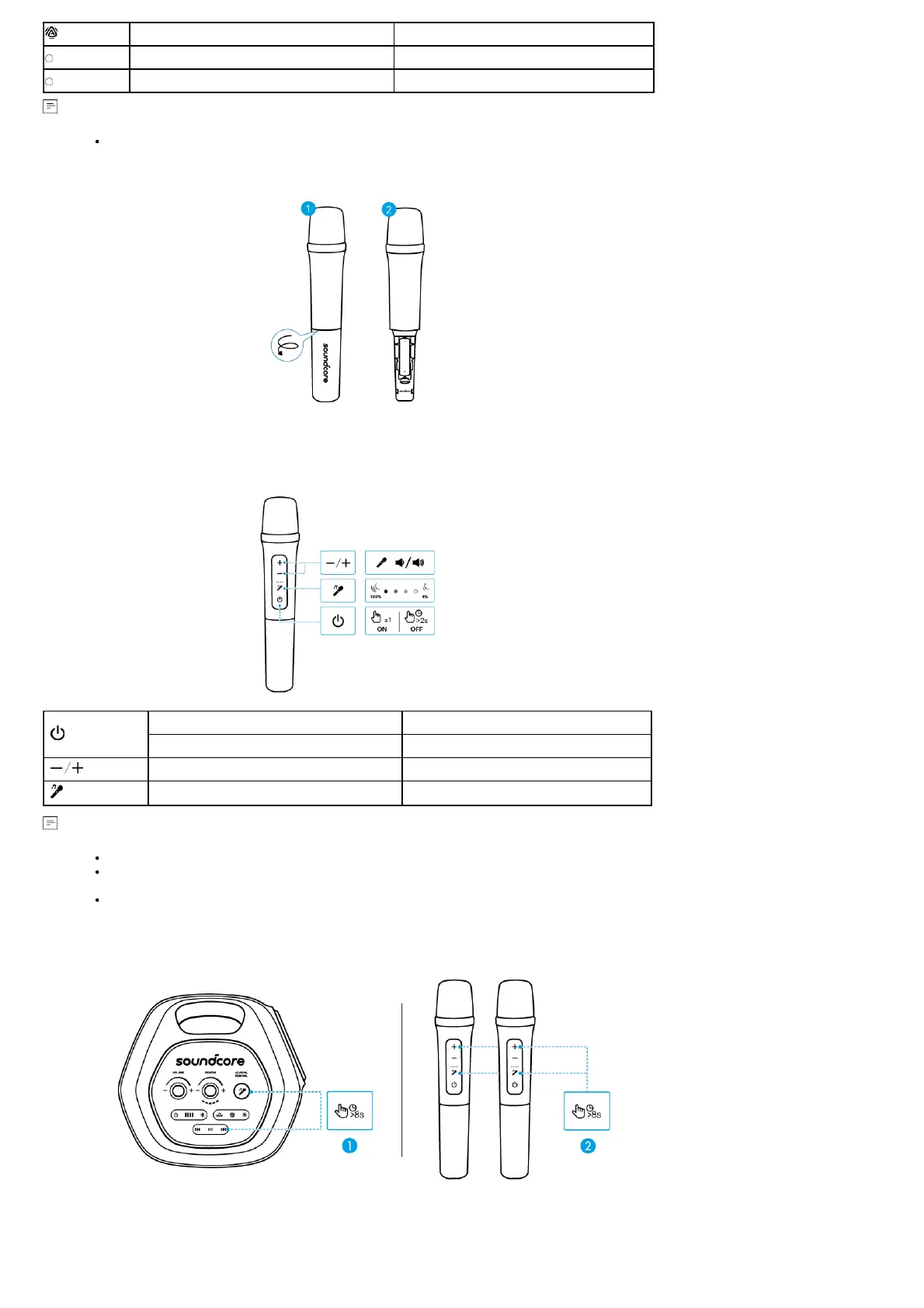 If the wireless microphones don’t connect automatically after powering on, follow the steps below to manually pair them with the speaker.