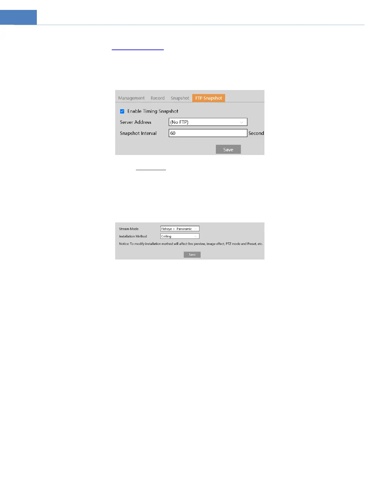 Timing Snapshot: Enable timing snapshot first and then set the snapshot interval and schedule. The setup steps of schedule are the