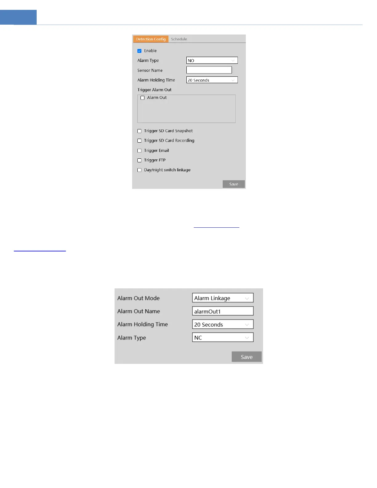 Alarm Linkage: Having selected this mode, select alarm out name, alarm holding time at the “Alarm Holding Time” pull down list box