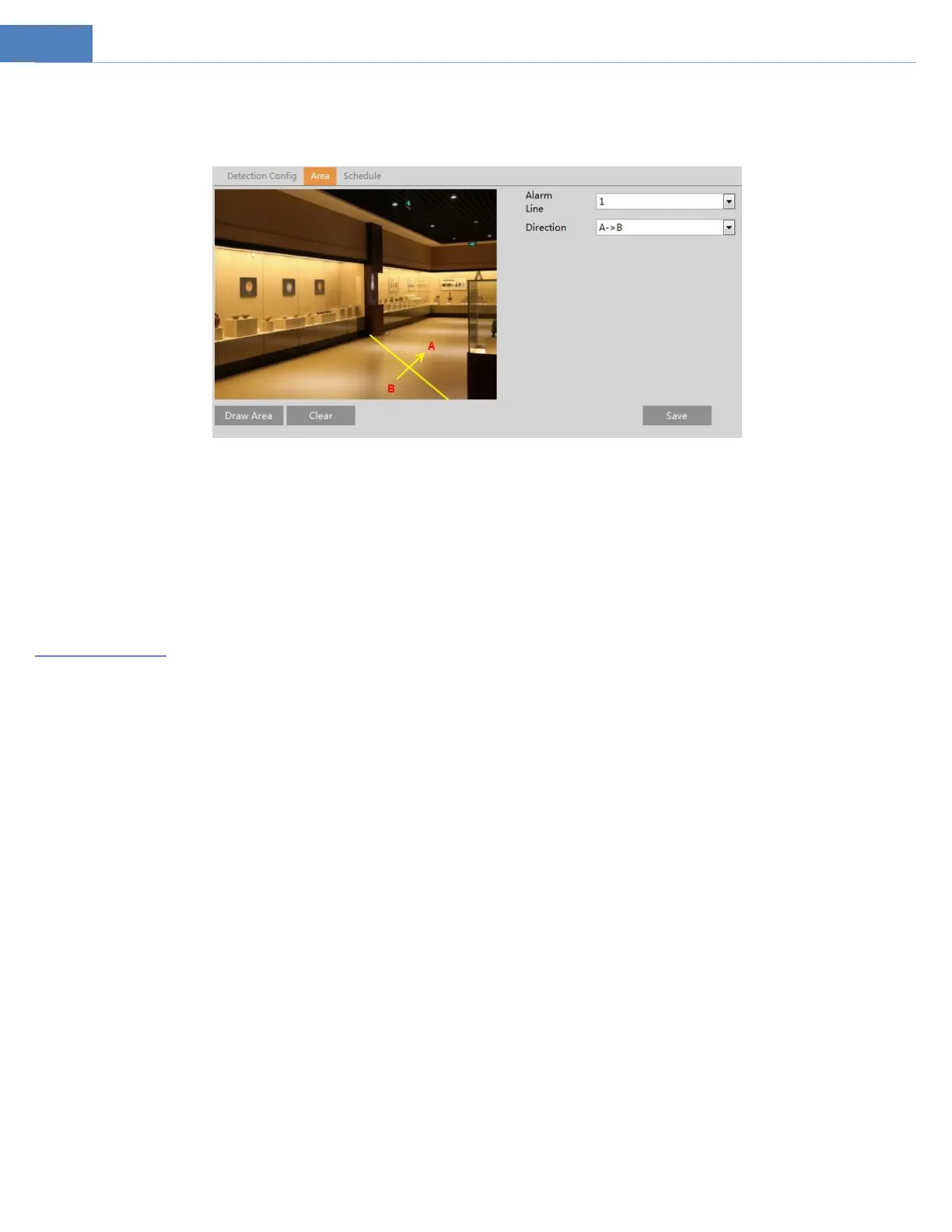 5. Set the area and sensitivity of the line crossing alarm. Click the “Area” tab to go to the interface as shown below.
