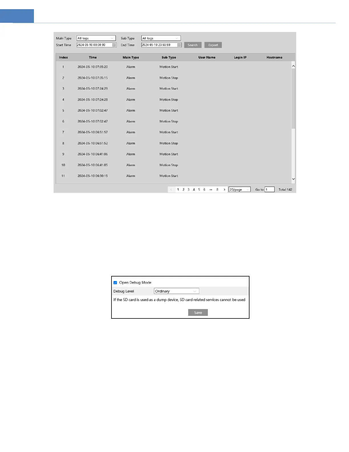 4. Click “Export” to export the operation log.