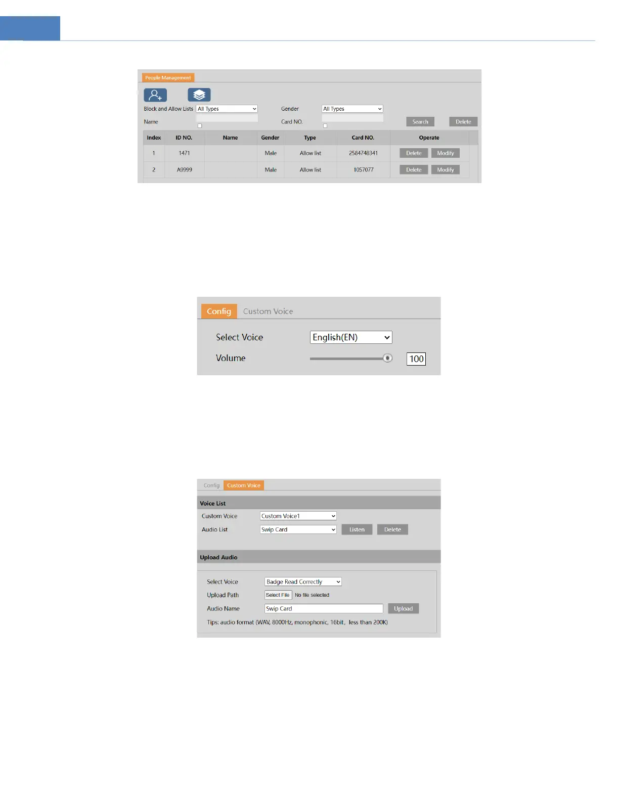 Click “Modify” to change people's information and click “Delete” to delete the personal information.