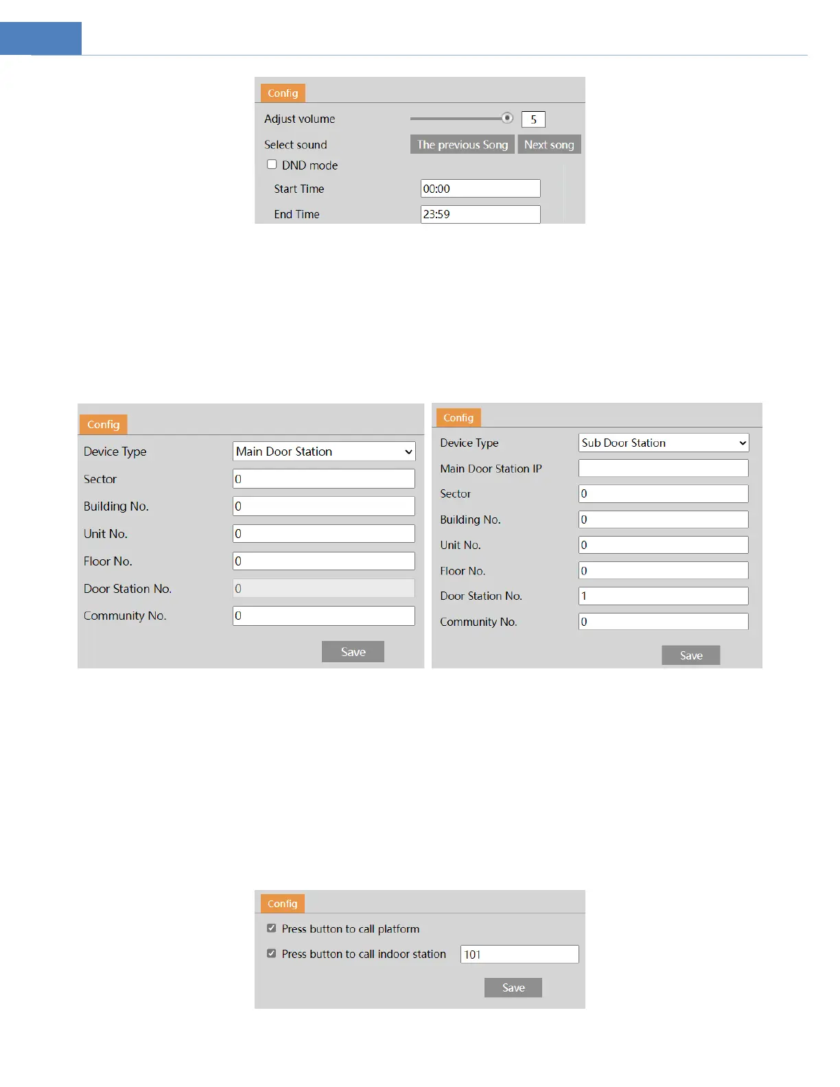 3. The sector no., building no., unit no., and community no. of the door station must be the same as the main door station.