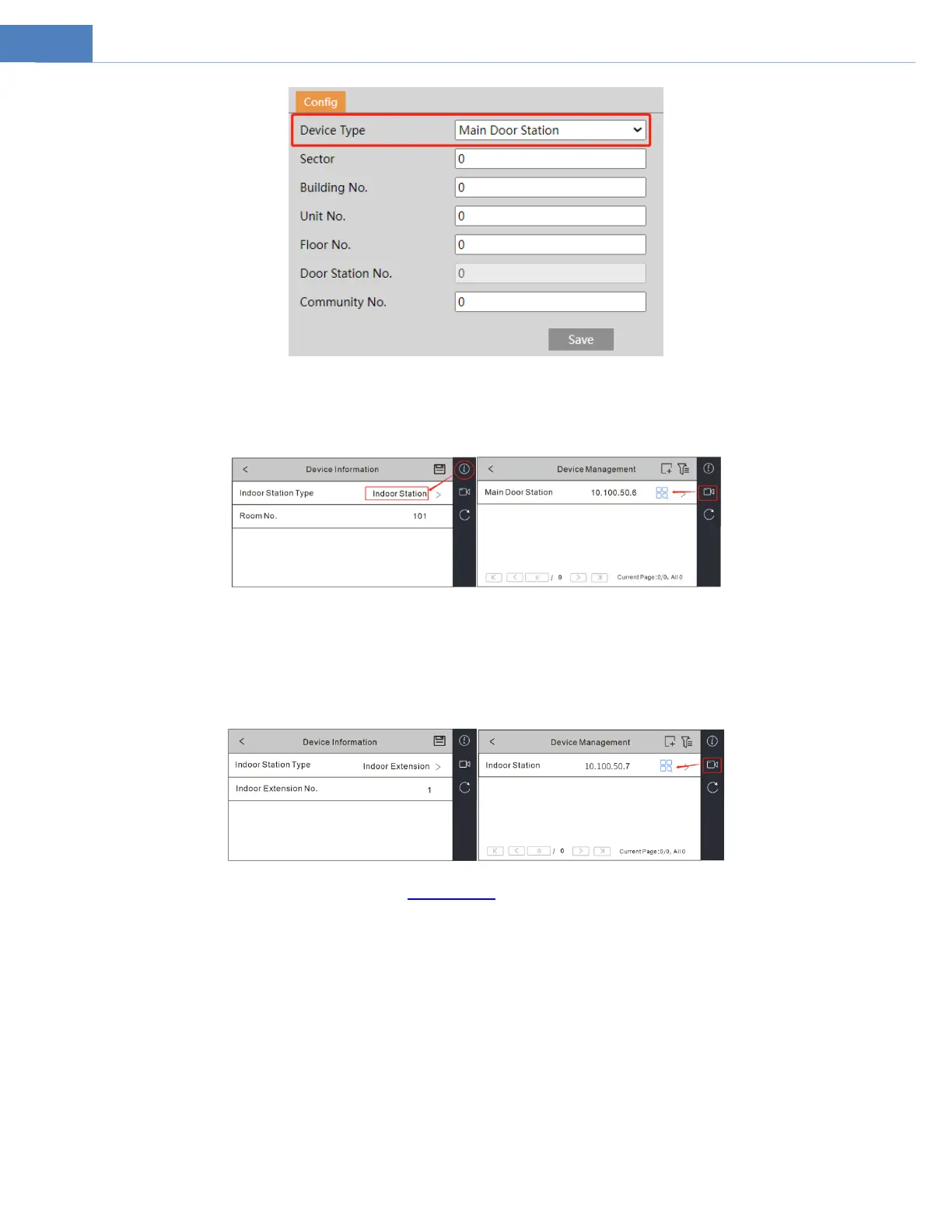 interface. Set the indoor station type (it should be set to “Indoor station”), room number (like 101), IP address of the main door