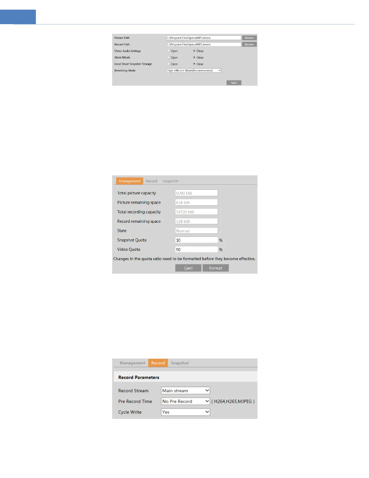 Snapshot Quota: Set the capacity proportion of captured pictures on the SD card.