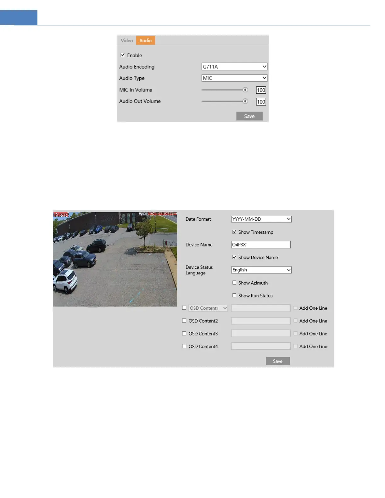 Set time stamp, device name, OSD content and picture overlap here. After enabling the corresponding display and entering the