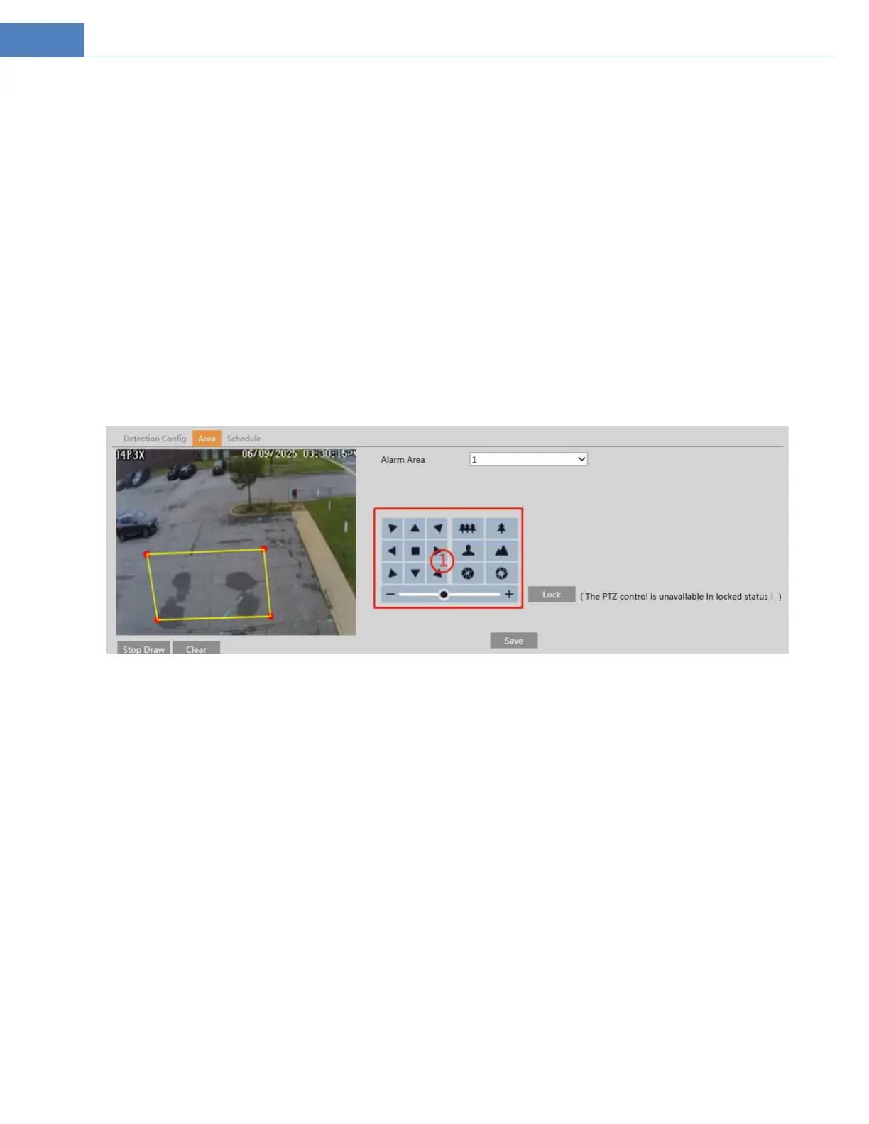 Using the PTZ control buttons (area①) sets appropriate field of view and then draw the detection area and save the setting.