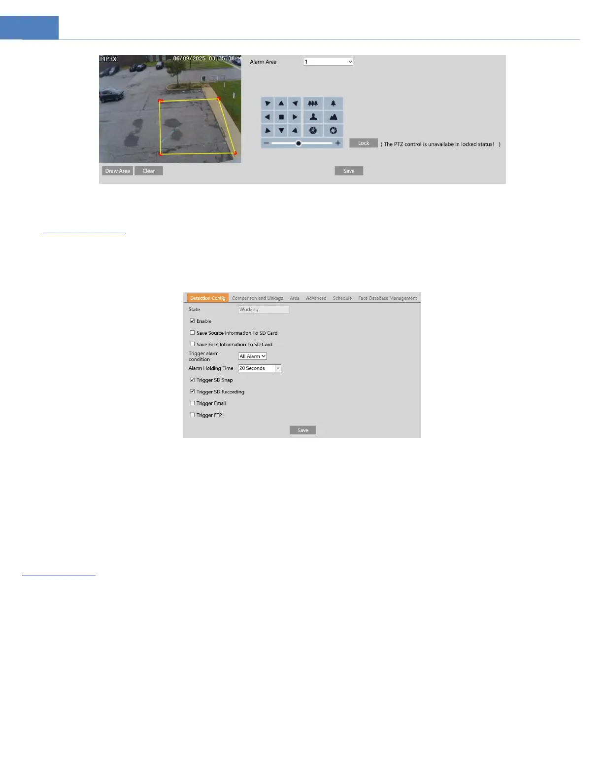 Set alarm holding time and alarm trigger options. The alarm trigger setup steps are the same as motion detection. Please refer to