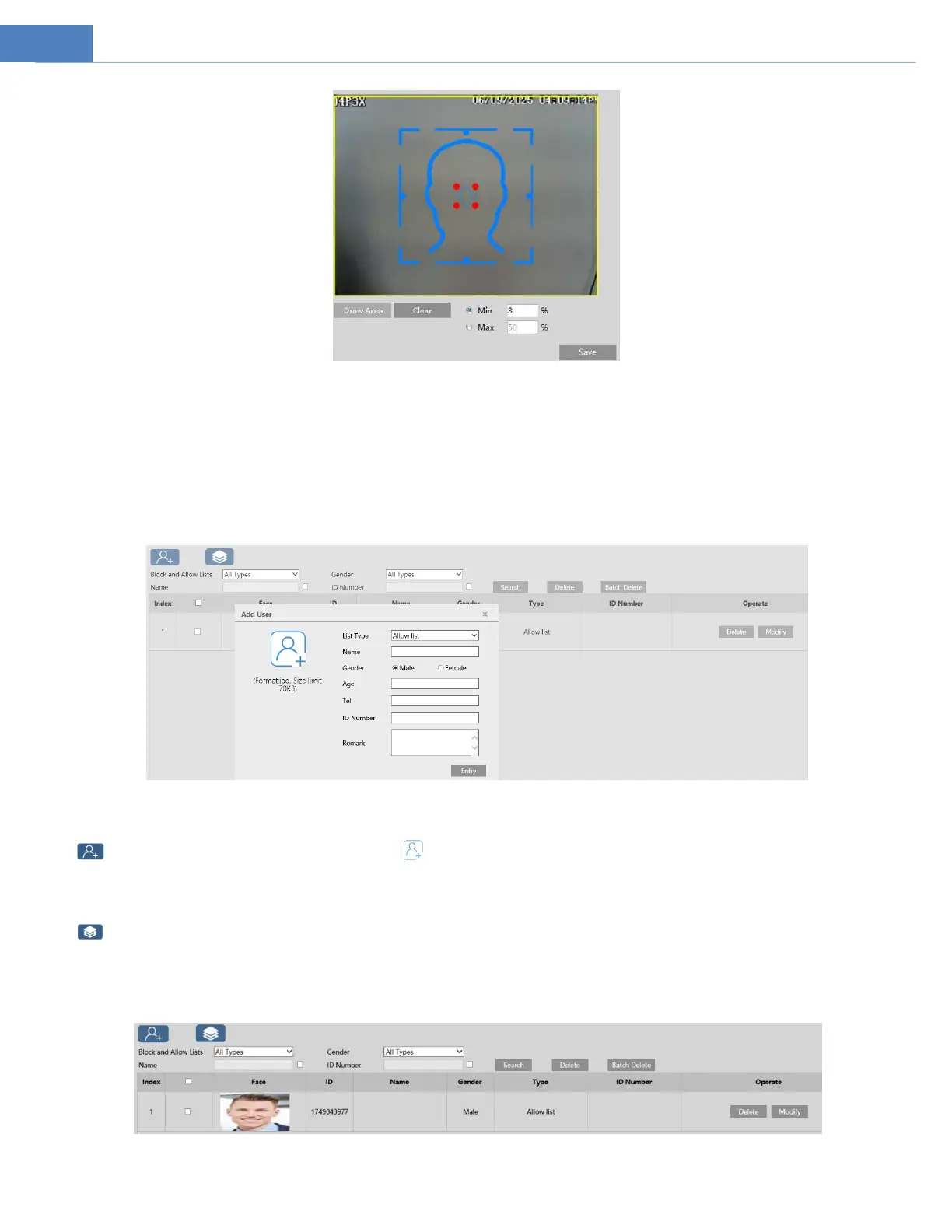 4. Face database management: click “Face Database Management” tab. This will enter the following interface.