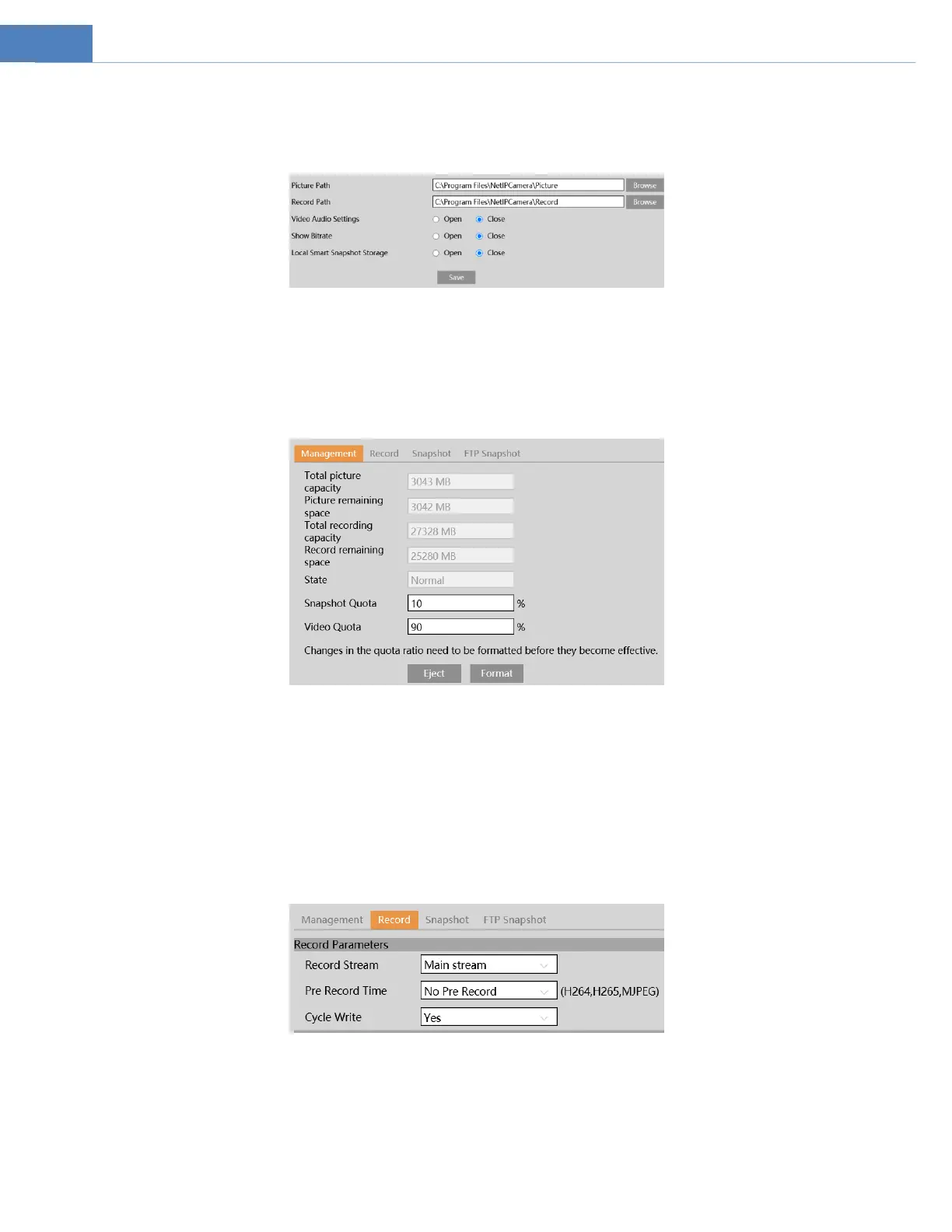 Go to SystemLocal Recording to set up the storage path of captured pictures and recorded videos on the local PC. There is also an