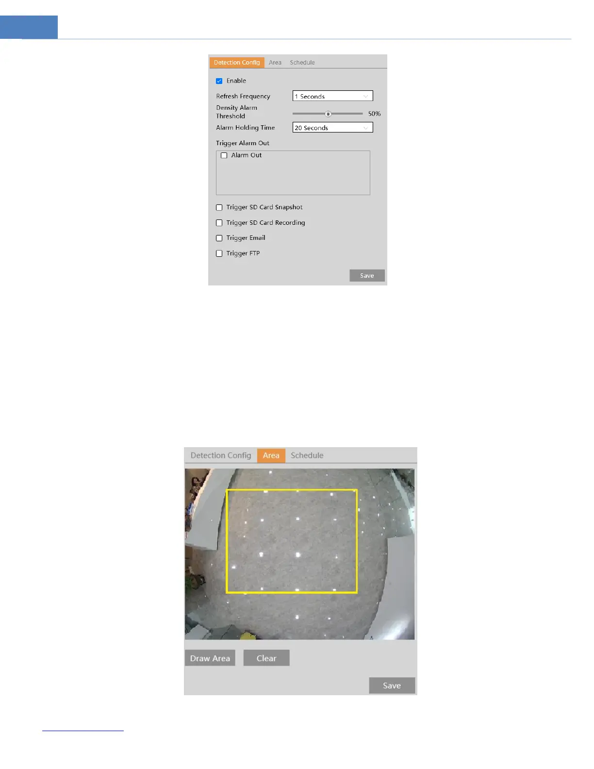 4. Set an alarm area for the crowd density detection. Click the “Area” tab as shown below.