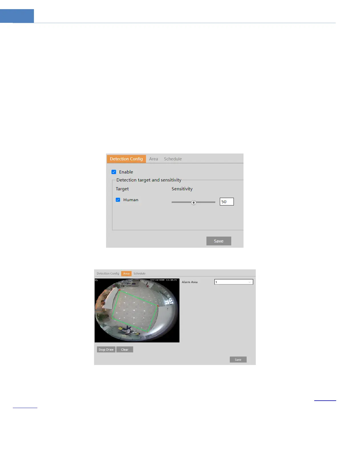 (the alarm area should be a closed area). Click the “Stop Draw” button to stop drawing. Click the “Clear” button to delete the alarm