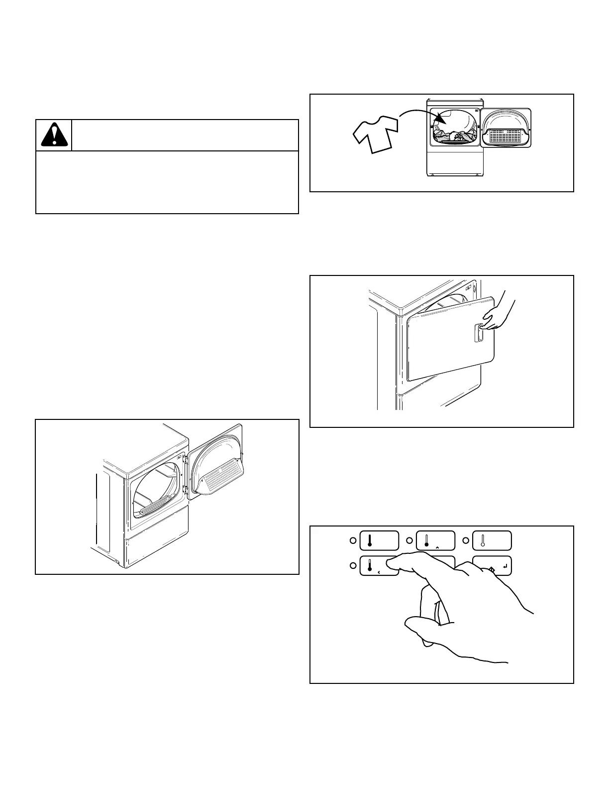 2. Dryer will not operate with the door open.