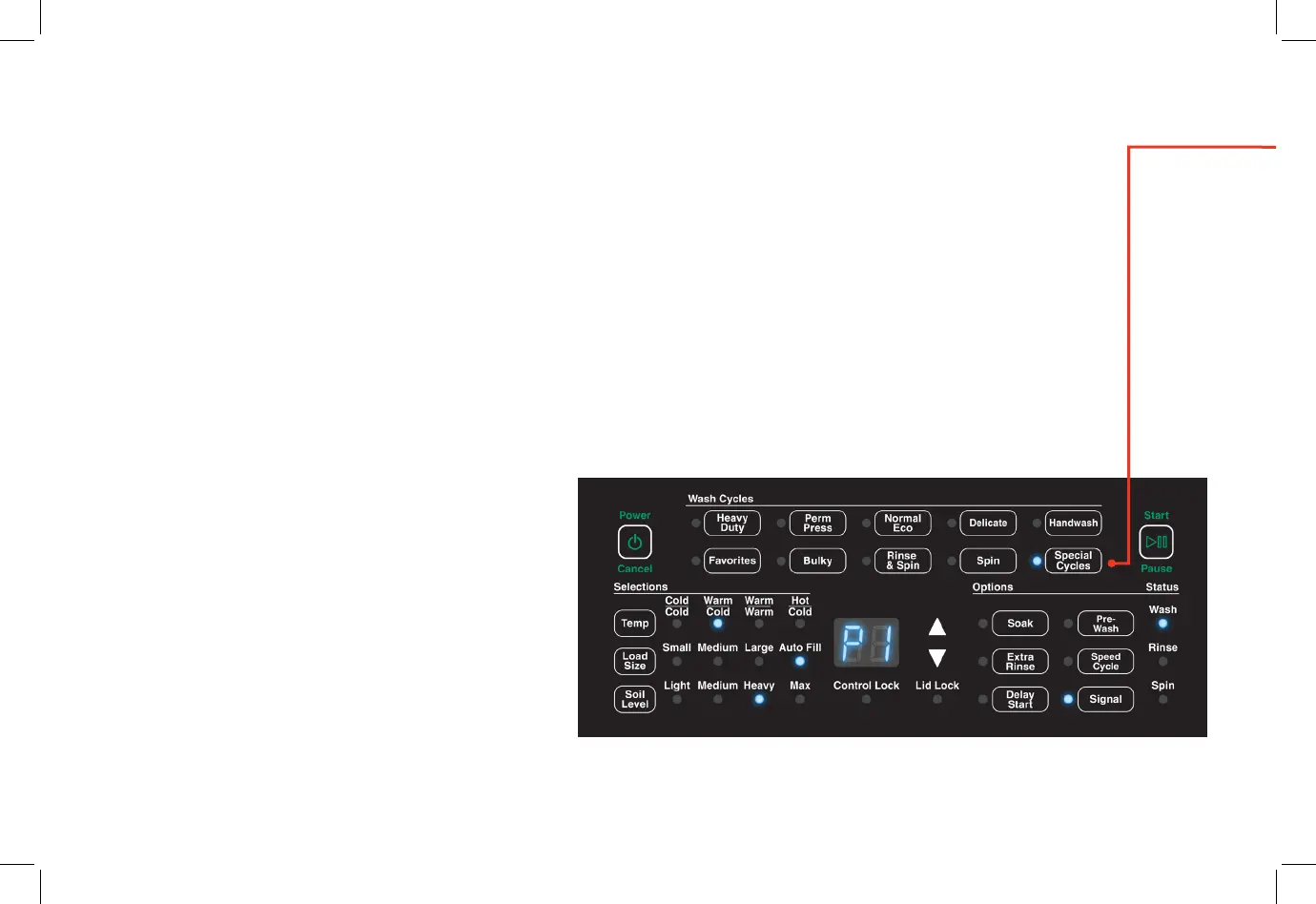 When you select the Special Cycles keypad, pressing the