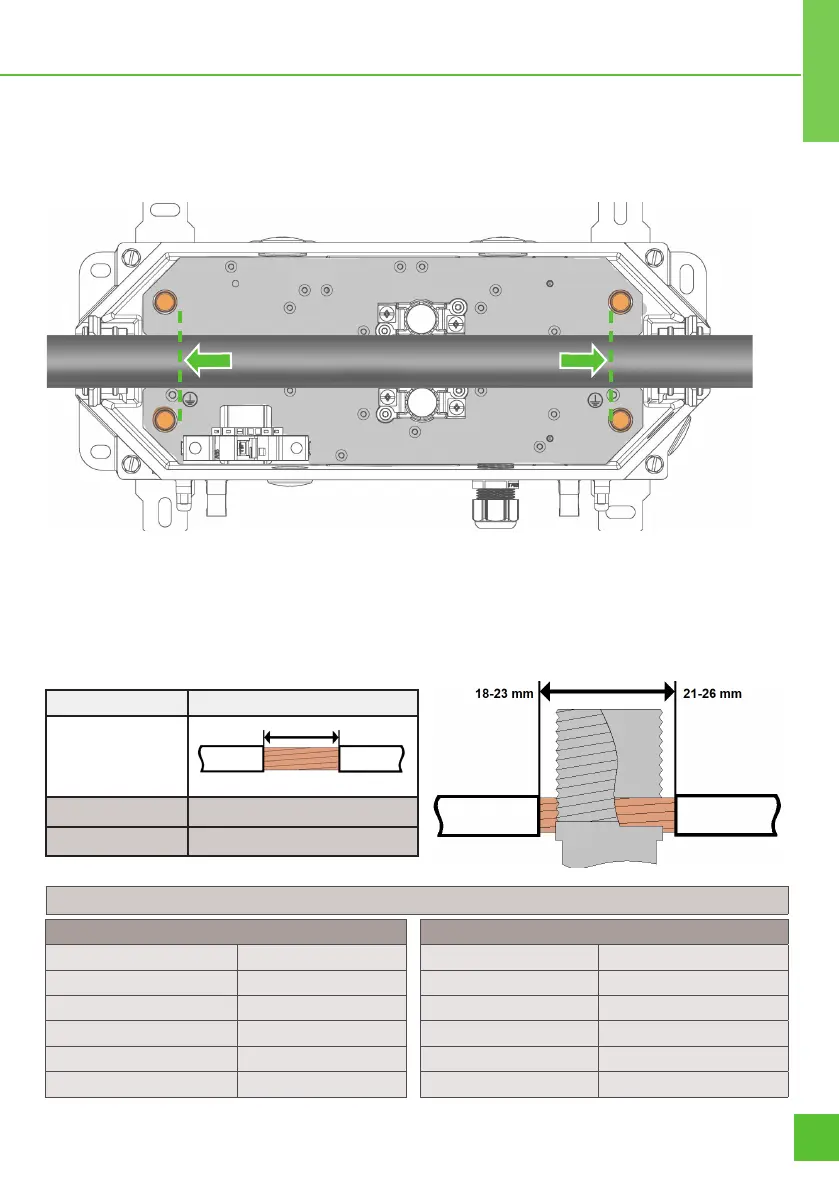 der Leitung freizulegen. Bei der 16 mm² Klemme muss die abisolierte Stelle eine Breite von 18 bis 23 mm