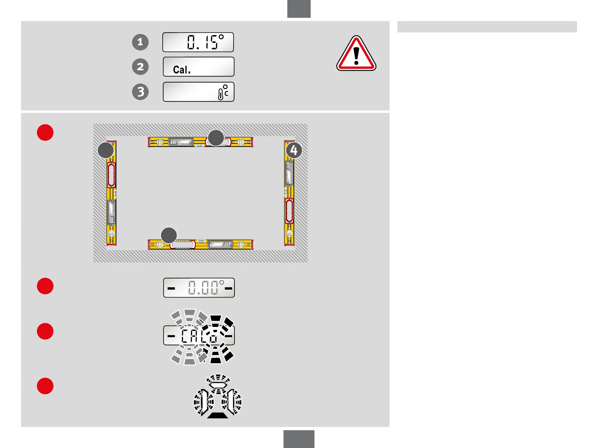 De elektronische waterpas moet in vier meetstanden na