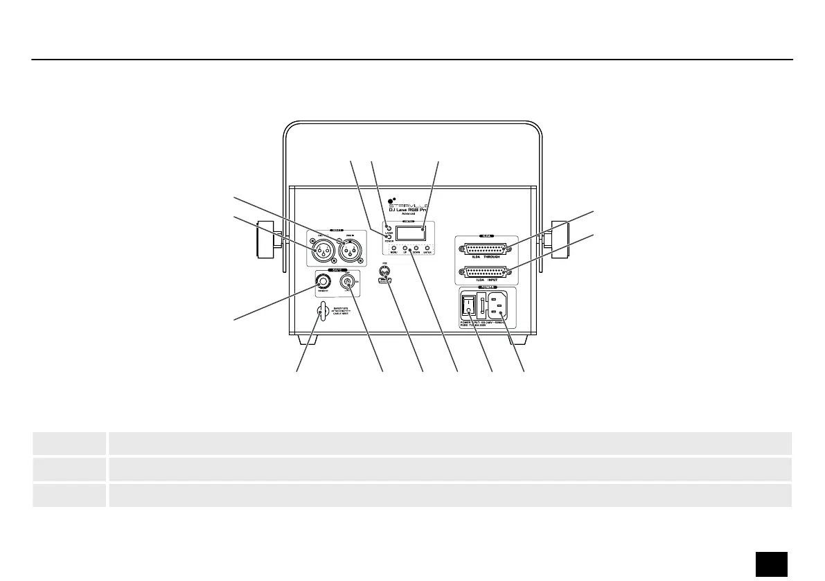 10 [LASER] | Indicator LED, lights up red permanently when the laser is on (key switch in the [ON] position)