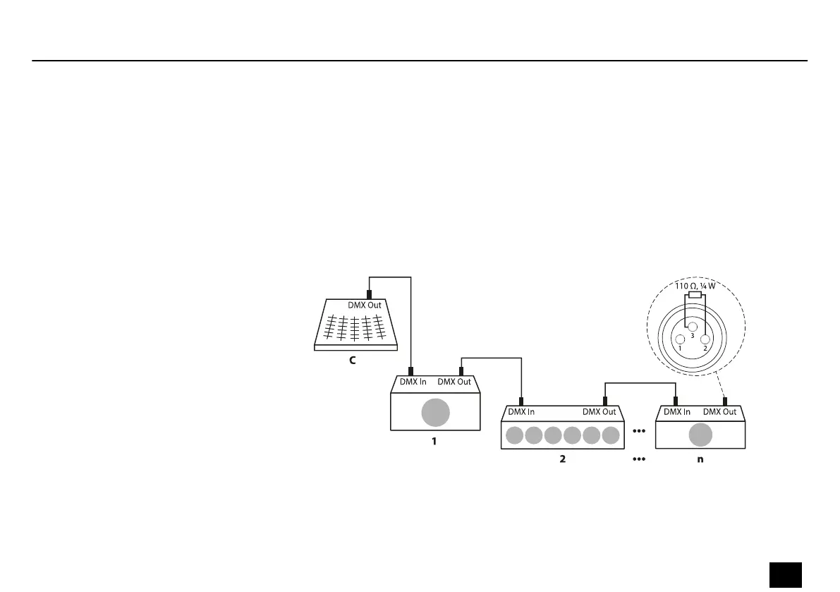 device. Connect the output of the rst DMX device to the input of the second one, and so on