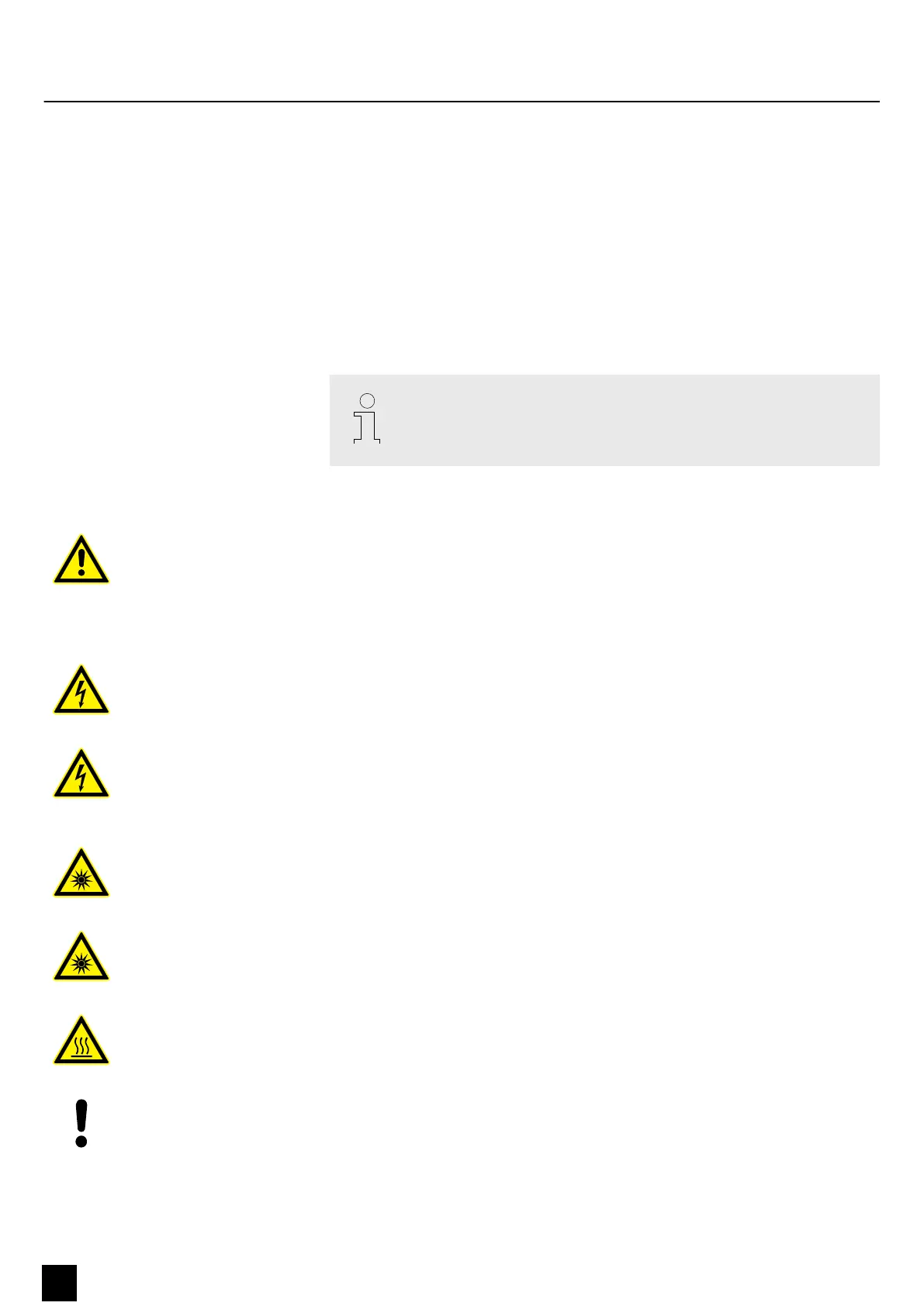 parts inside. Do not use the device when covers, safety equipment or optical components are missing or damaged.