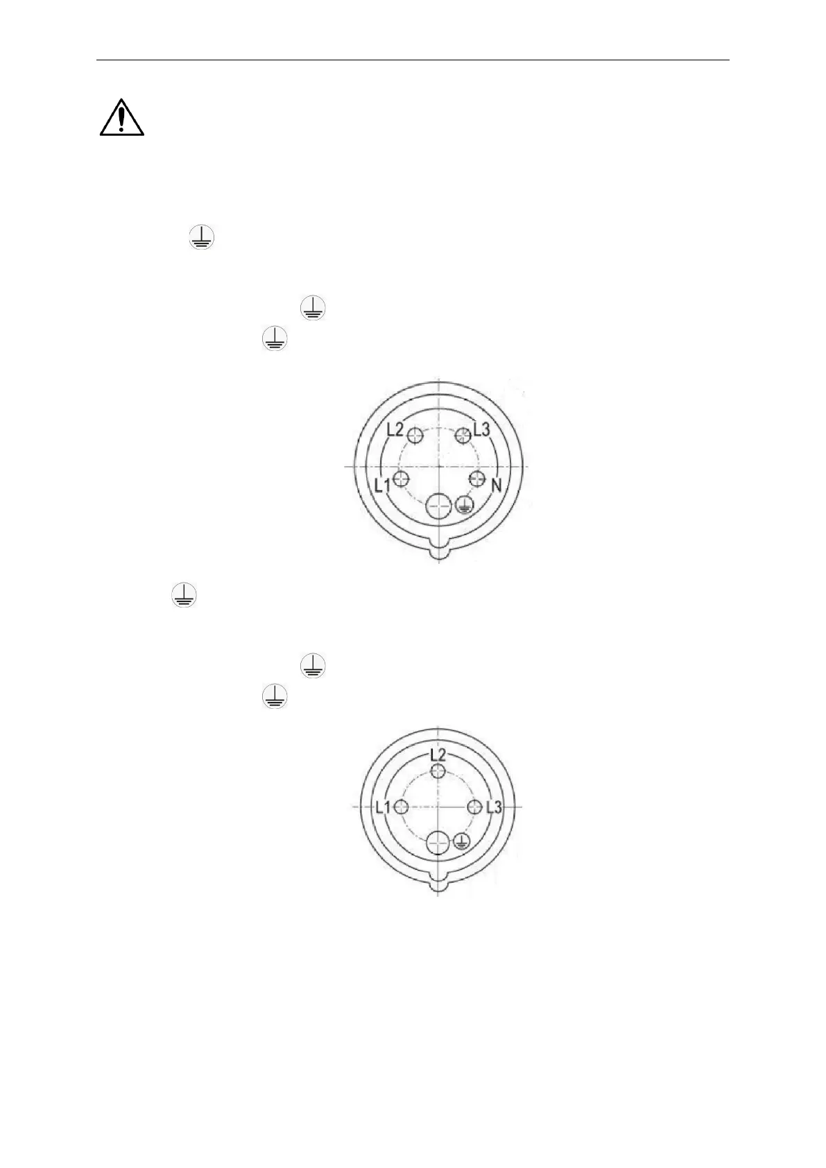 Fasedraden L1, L2, L3 moeten worden aangesloten op de socketconnectoren gemarkeerd als