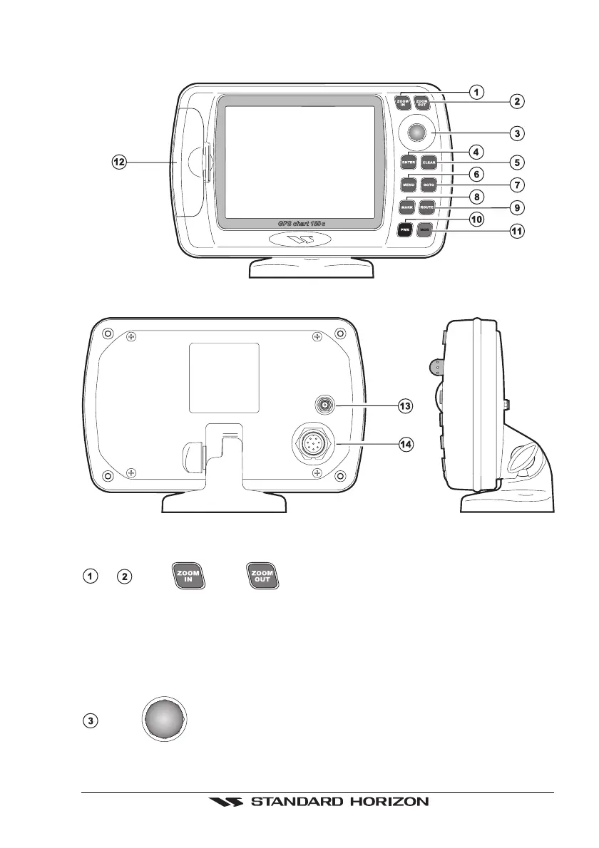 show a wider, otherwise less detailed view. Pressing and holding “ZOOM IN”/