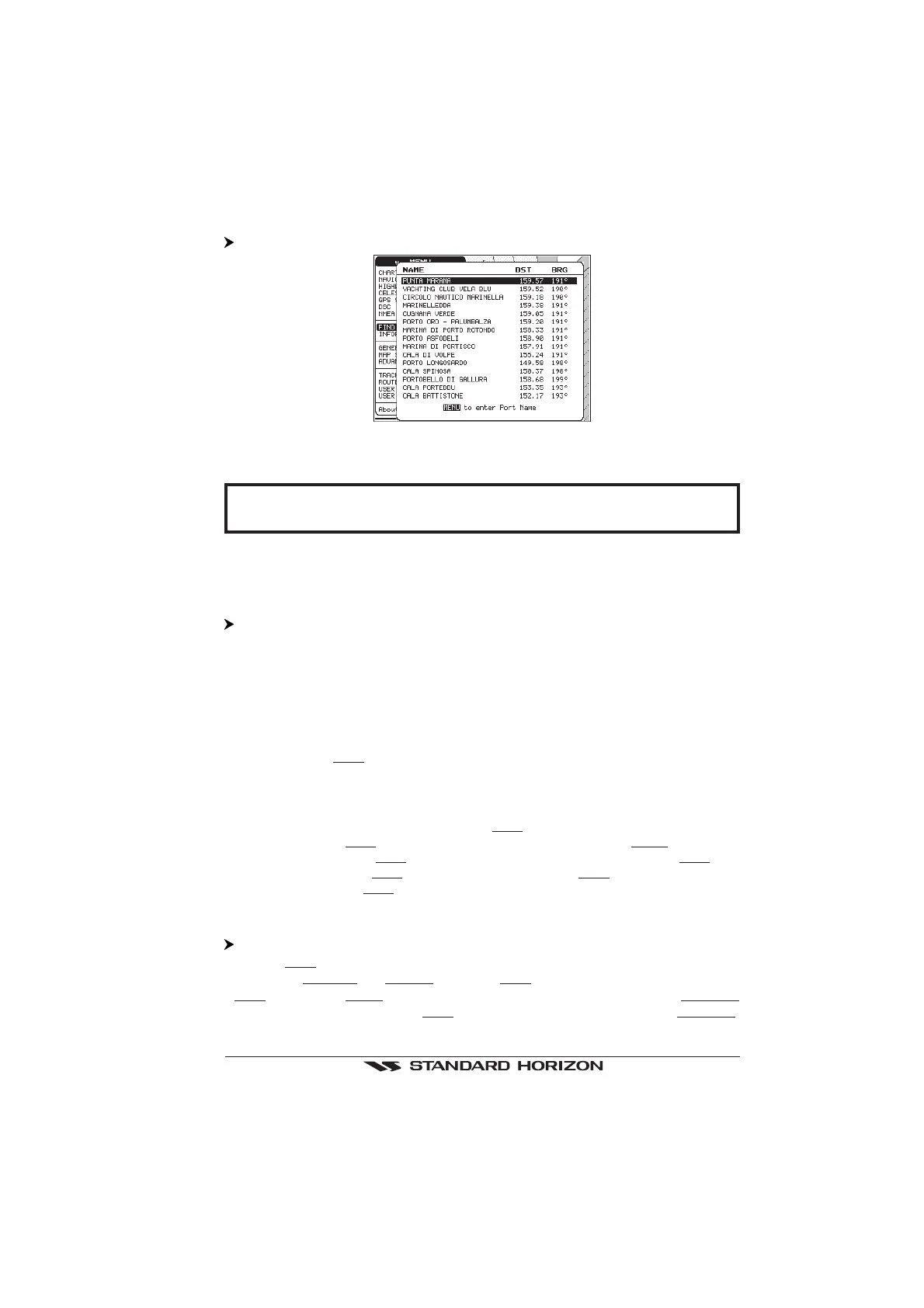 'MENU' + "FIND" + 'ENTER' + "PORT BY NAME" + 'ENTER'