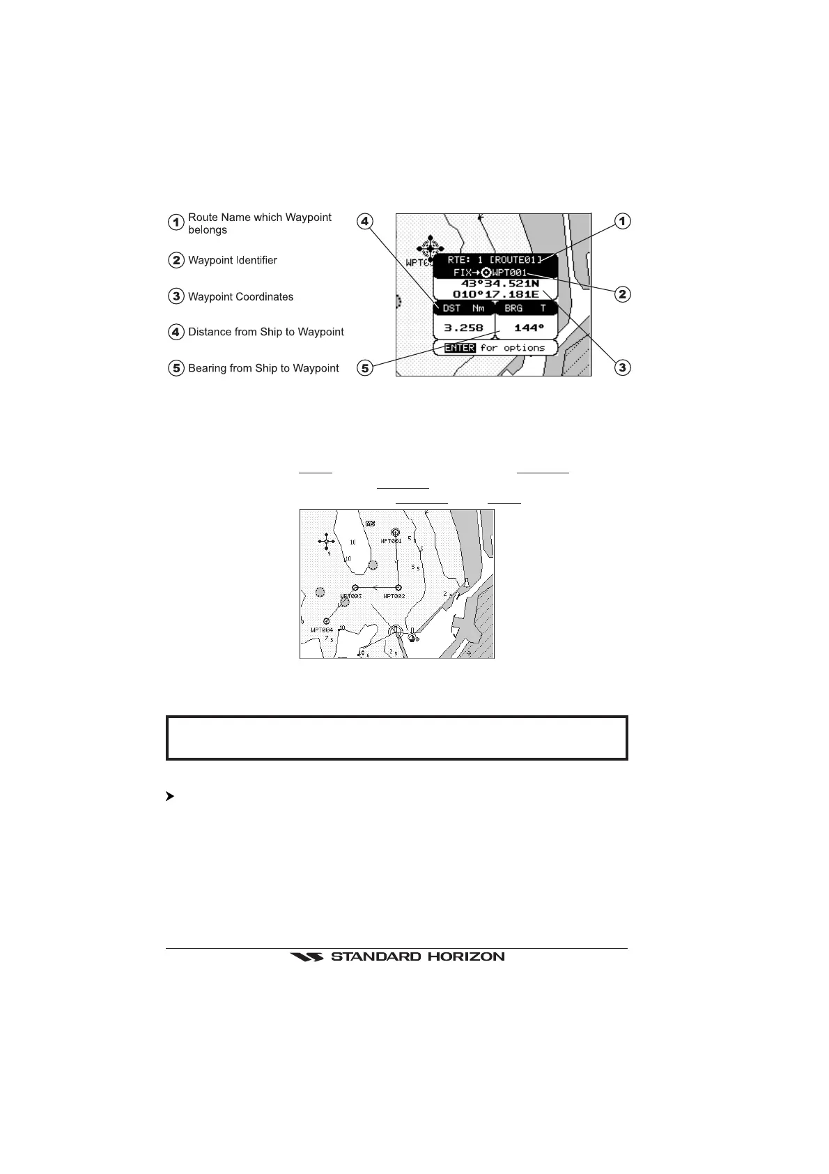 "Adding Waypoint". The sequence of moving the cursor and pressing 'ROUTE' is