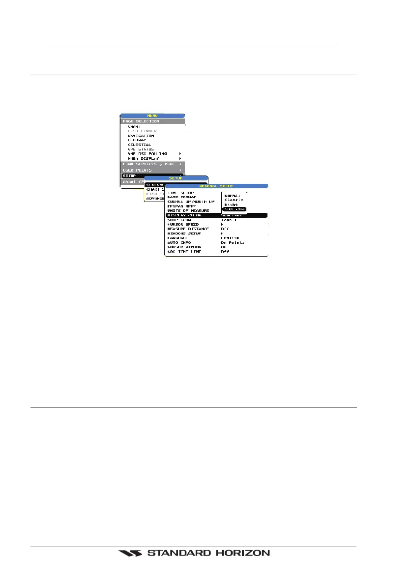 pages quickly without the need to go into the menu. The default pages are CHART, NAV,
