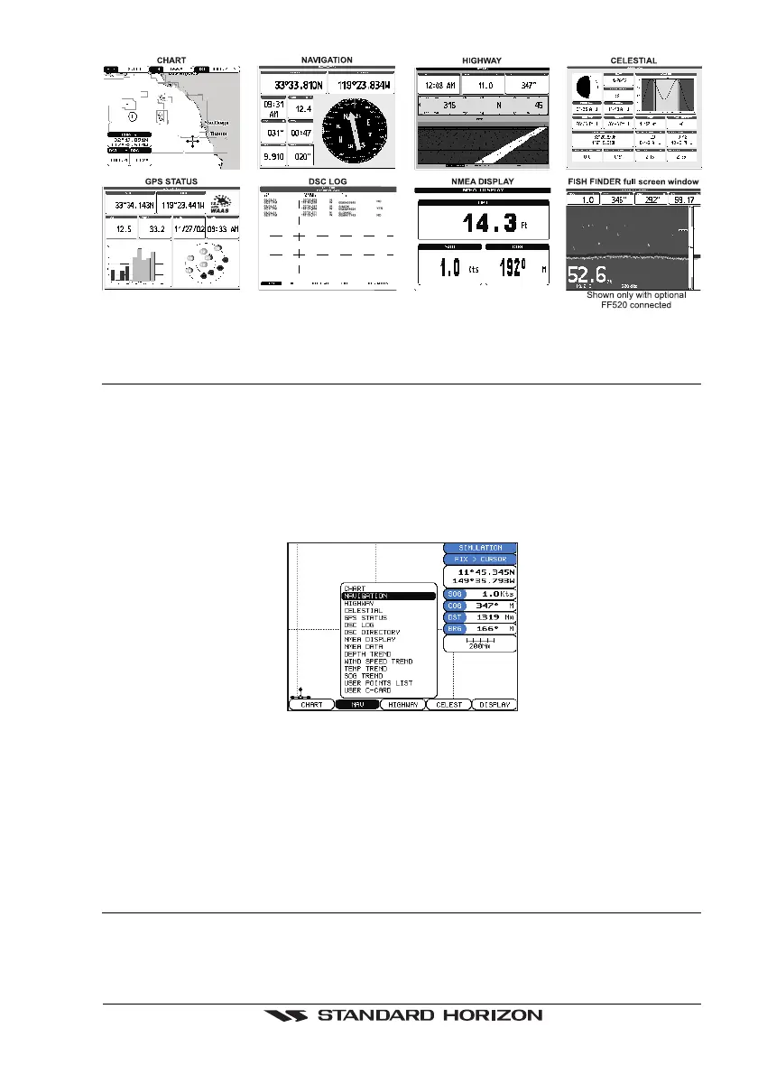 pages (discussed above) to the following: CHART, NAVIGATION, HIGHWAY, CELE-