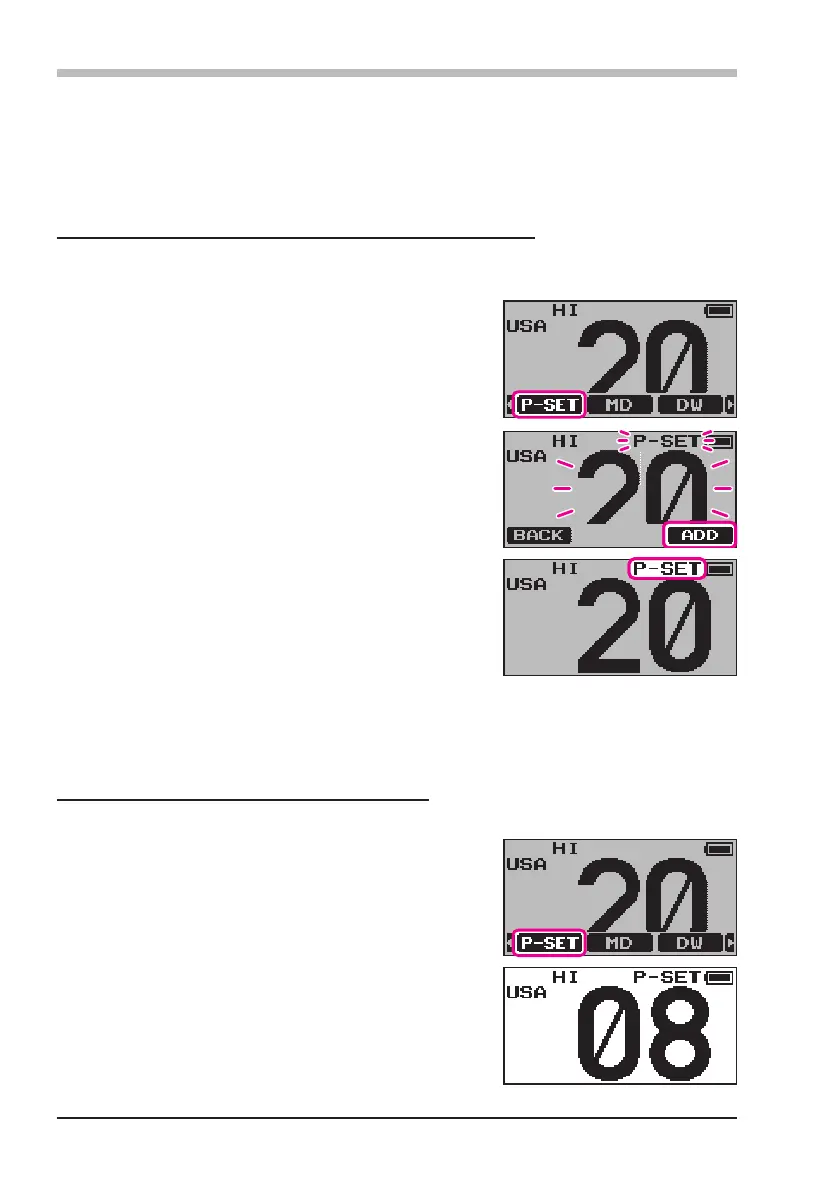 Pressing the [P-SET] soft key activates the user assigned channel bank. If the