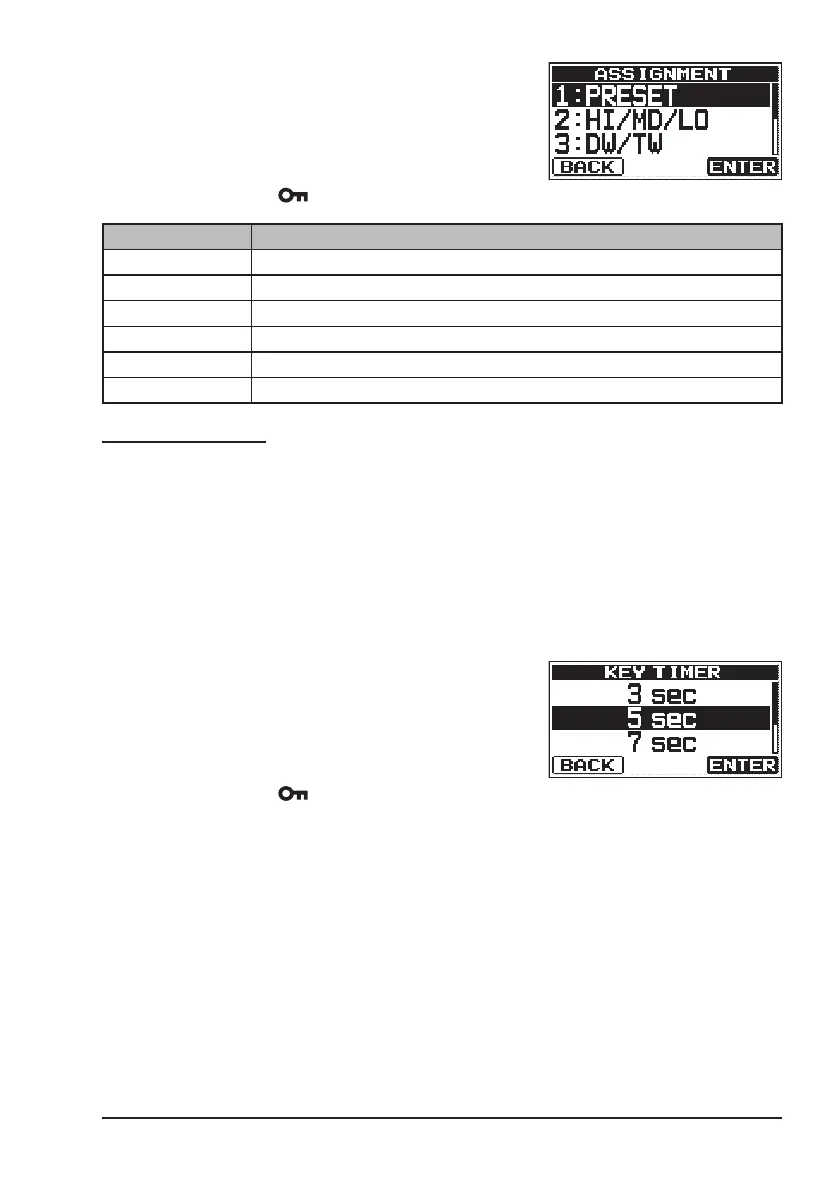 5. Select “KEY TIMER” with the [▲] or [▼] key, then press the [ENT/MENU]