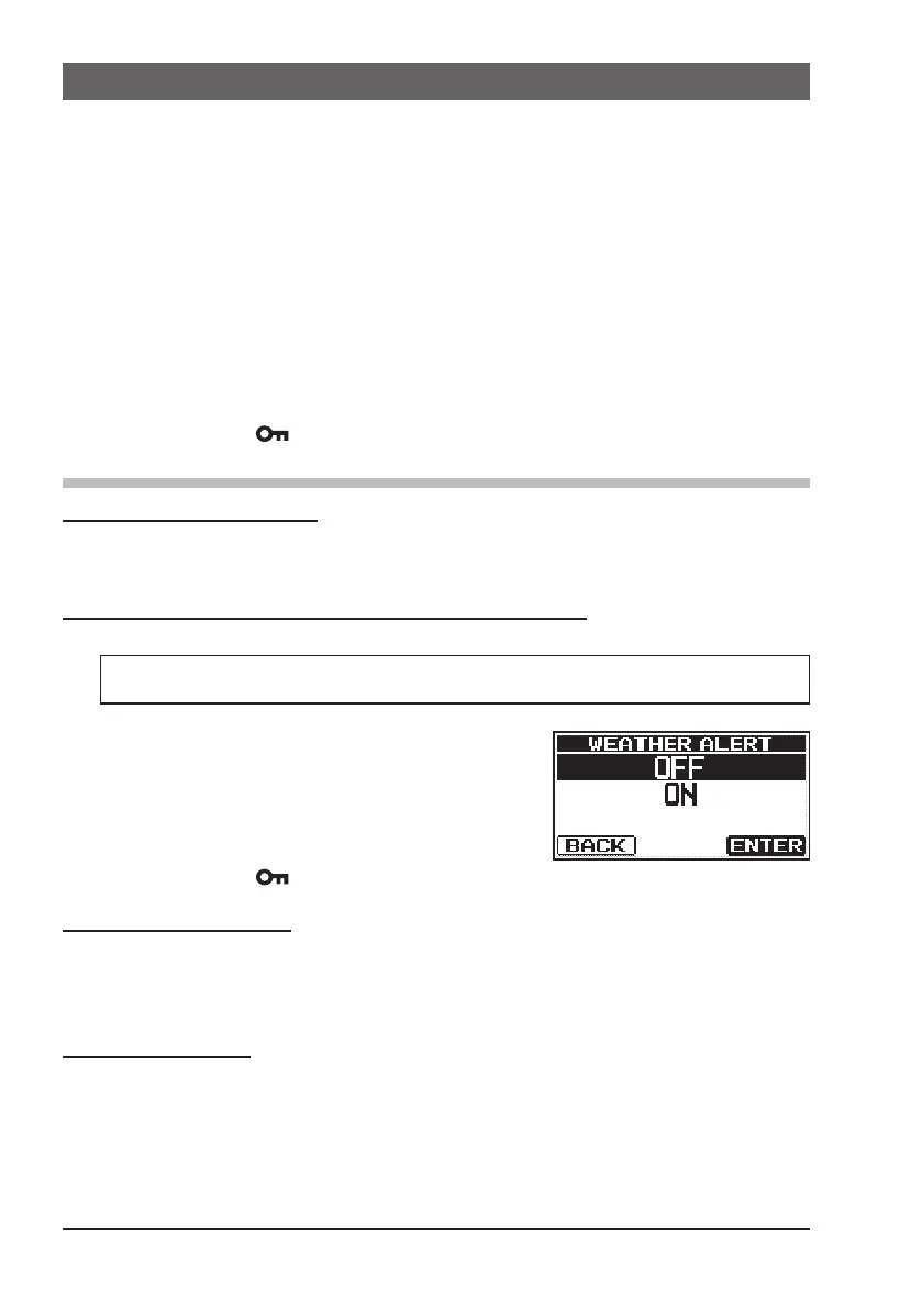 Enables/disables the NOAA Weather Alert function. The default setting is “OFF”.